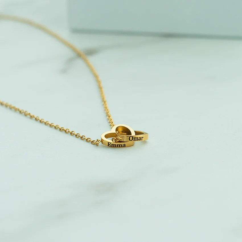 Collier à 2 Cœurs : Un bijou magnifique représentant l’union de deux âmes, avec la possibilité de graver vos noms ou un message spécial.